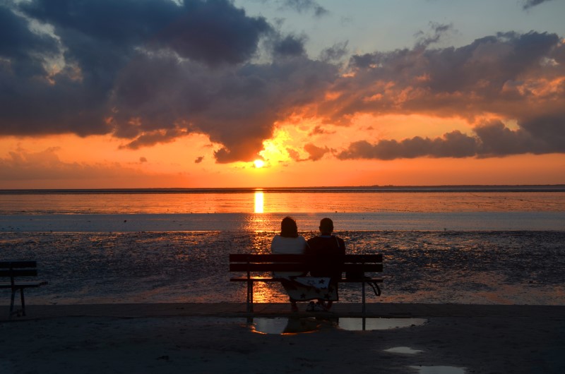 Deich und betrachten atemberaubende Sonnenuntergänge. Die